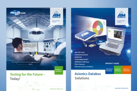 AIM’s complete Portfolio of Interface Modules, Analysis Software and Systems Solutions for following Applications: MIL-STD-1553 STANAG3910/EFEX ARINC429 AFDX®/ARINC664P7 ARINC825 Fibre Channel Ethernet (up to 10 Gbit/s)