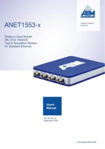 The ANET1553-x is a member of AIM’s MIL-STD-1553 Ethernet based modules for analyzing, simulating, monitoring and testing MIL-STD-1553A/B databuses providing 1 or 2 dual redundant bus streams.