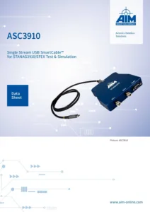 The ASC3910 (AIM SmartCable™) USB module offers full function test, simulation, monitoring and recording for STANAG3910/ EFAbus Express (EFEX) applications in a compact form factor.